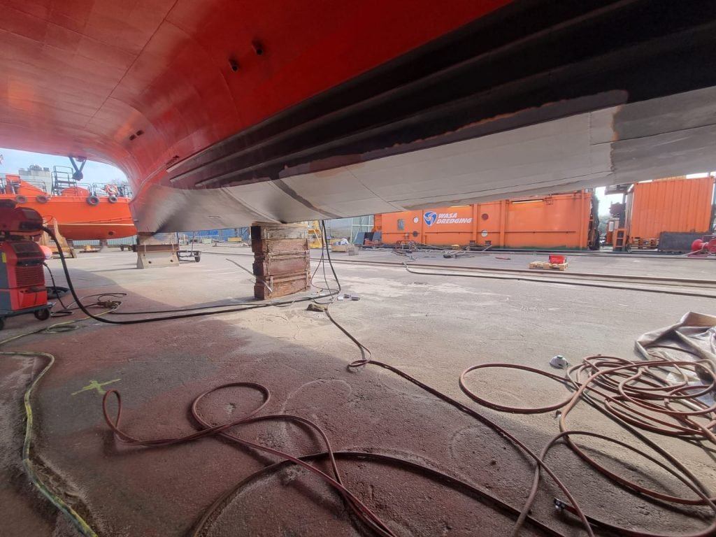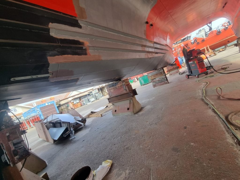 Initially, damaged hull areas were exposed – revealing structural issues and corrosion.
